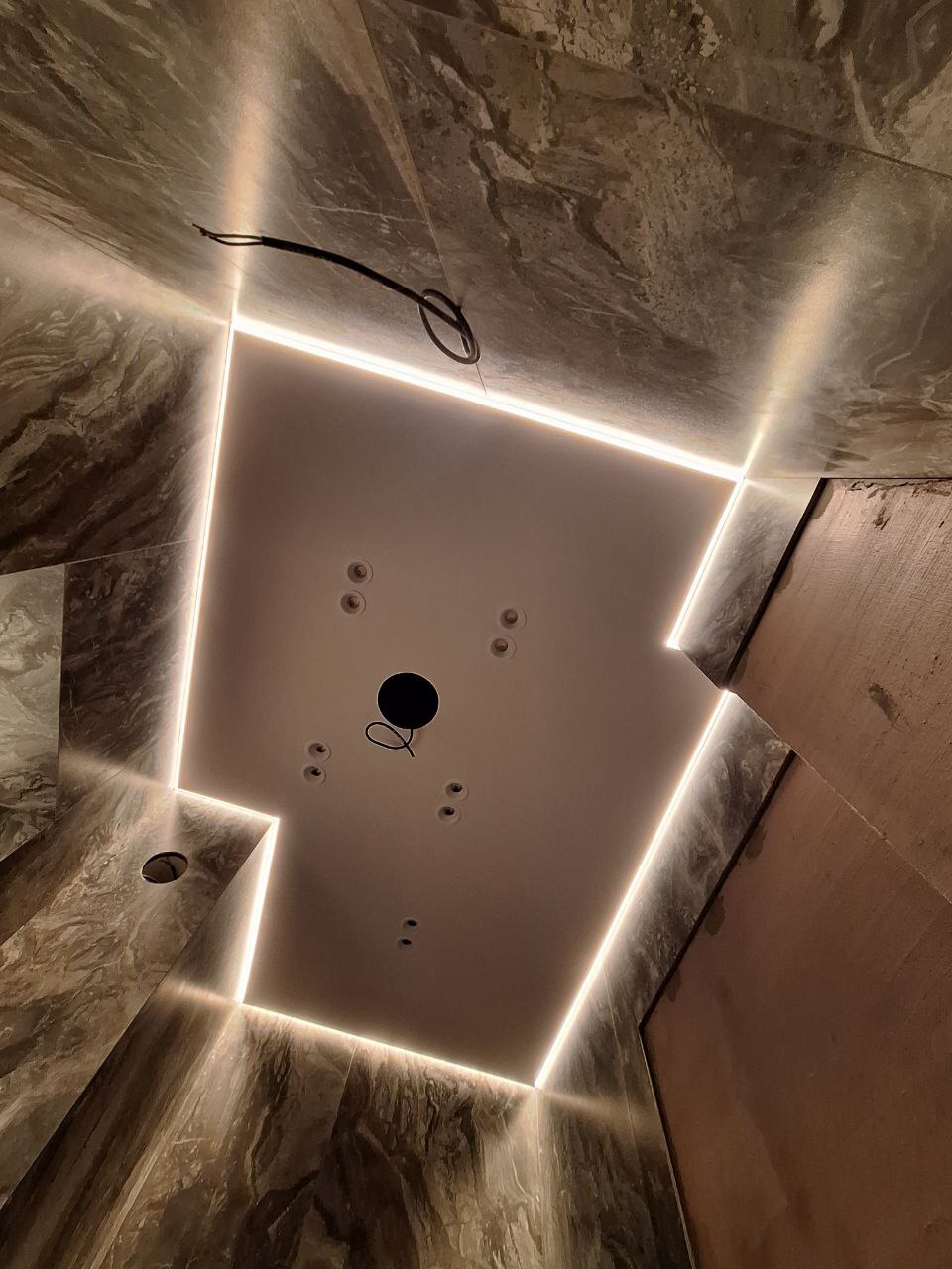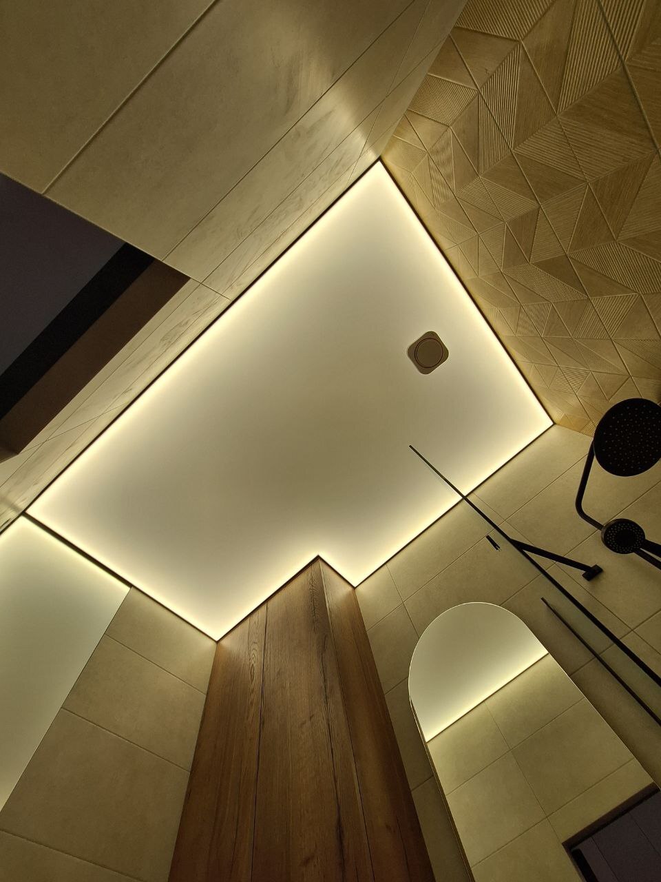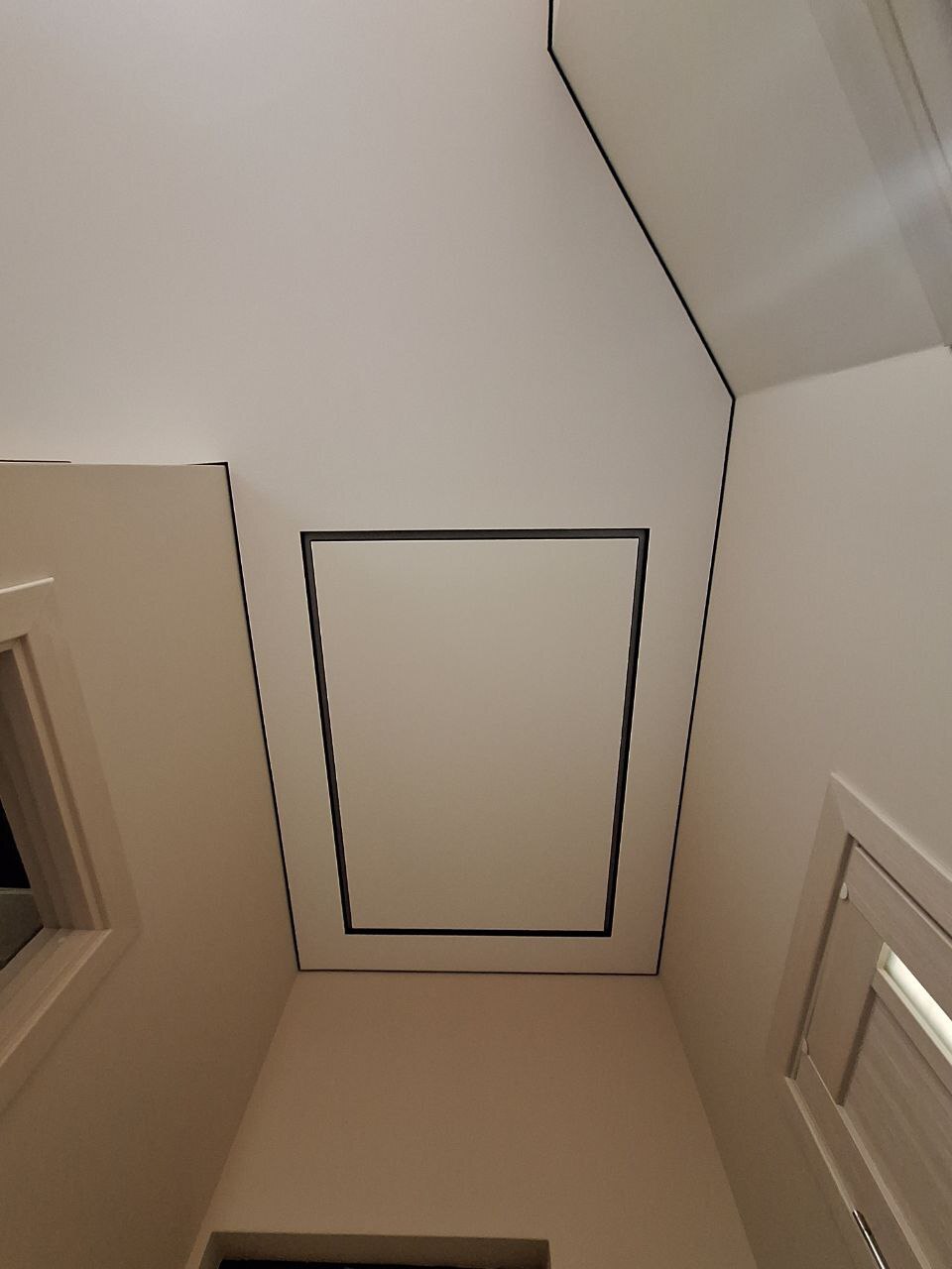 Различные изгибы и сложная геометрия помещения не является помехой при монтаже теневого профиля и натяжке, при должной квалификации рабочих. Это главное достоинство и главная причина полюбить теневое примыкание