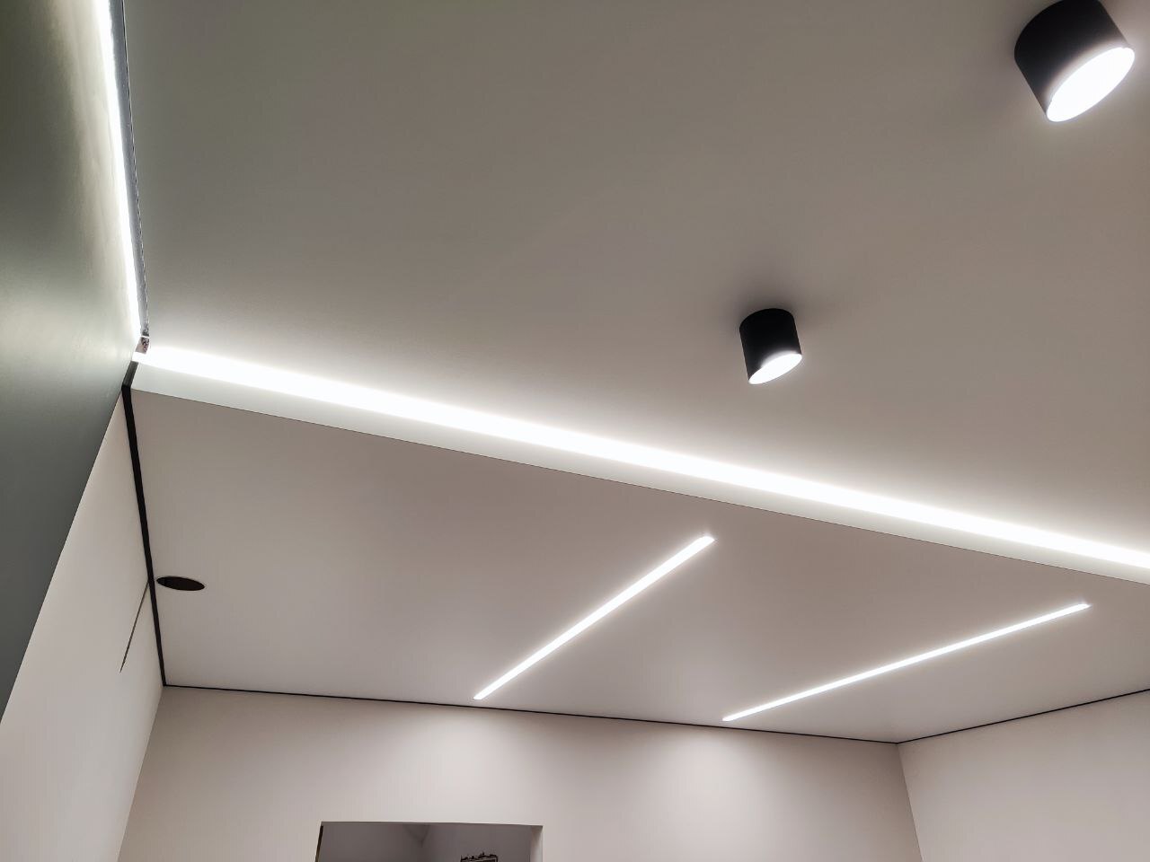 Мы предлагаем большой выбор световых линий открытого и закрытого типа с установкой натяжного полотка. Поможем составить проект и сделаем светорасчет, исходя из параметров помещения.